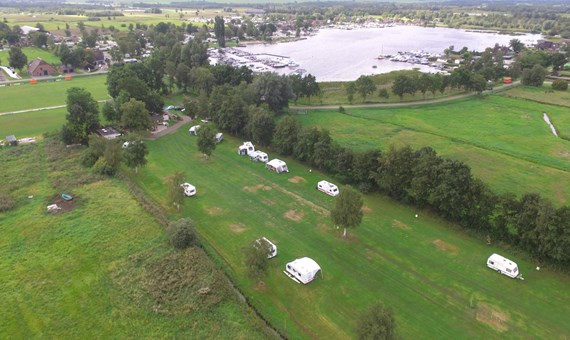 Het terrein bestaat uit een langgerekt grasveld beschut door bomen met 56 ruime kampeerplaatsen. Uw auto parkeert u op het parkeerterrein. Daardoor en doordat ’t Hoogland aan een niet-doorgaande weg ligt, is het heerlijk rustig en autovrij op het terrein.